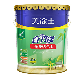 白竹炭全效 5 合 1 康健墙面漆特殊添加白竹炭因子,,,,,,使用净味原质料及净味手艺,,,,,,双核净味,,,,,,气息清新;;;;在生产历程中不添加 APEO,,,,,,环保清静;;;;产品配方皓白,,,,,,遮掩力好,,,,,,易于施工;;;;同时漆膜细腻,,,,,,手感爽滑,,,,,,是打造康健环保,,,,,,长期靓丽墙面的理想选择!